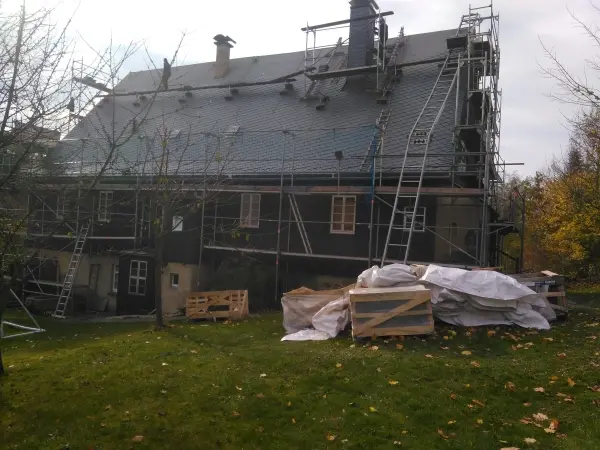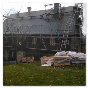 Reparatur, Erneuerung und Witterungsschutz von SchornsteinköpfenDer Schornsteinfeger hat Ihnen im Rahmen der Feuerstättenschau Auflagen erteilt, wir helfen Ihnen bei der Umsetzung.• Aufbau eines Schornsteingerüstes,• Aufbau eines Schrägaufzuges zum Materialtransport,• Verblendfläche von Schornsteinen neu verfugen,• Abbruch von maroden Schornsteinkopfen und neu Aufmauern von Schornsteinen,• Schornsteinabdeckungen,• Schornsteinaufsätze zur Verbesserung des Schornsteinzuges.• Schornsteinbekleidungen mit Schiefer, Faserzement oder Metall, diese schützen den Schornstein vor Witterungseinflüssen.• Erneuerung oder Ergänzungen von Laufsteganlagen zur Zugänglichkeit des Schornsteines.